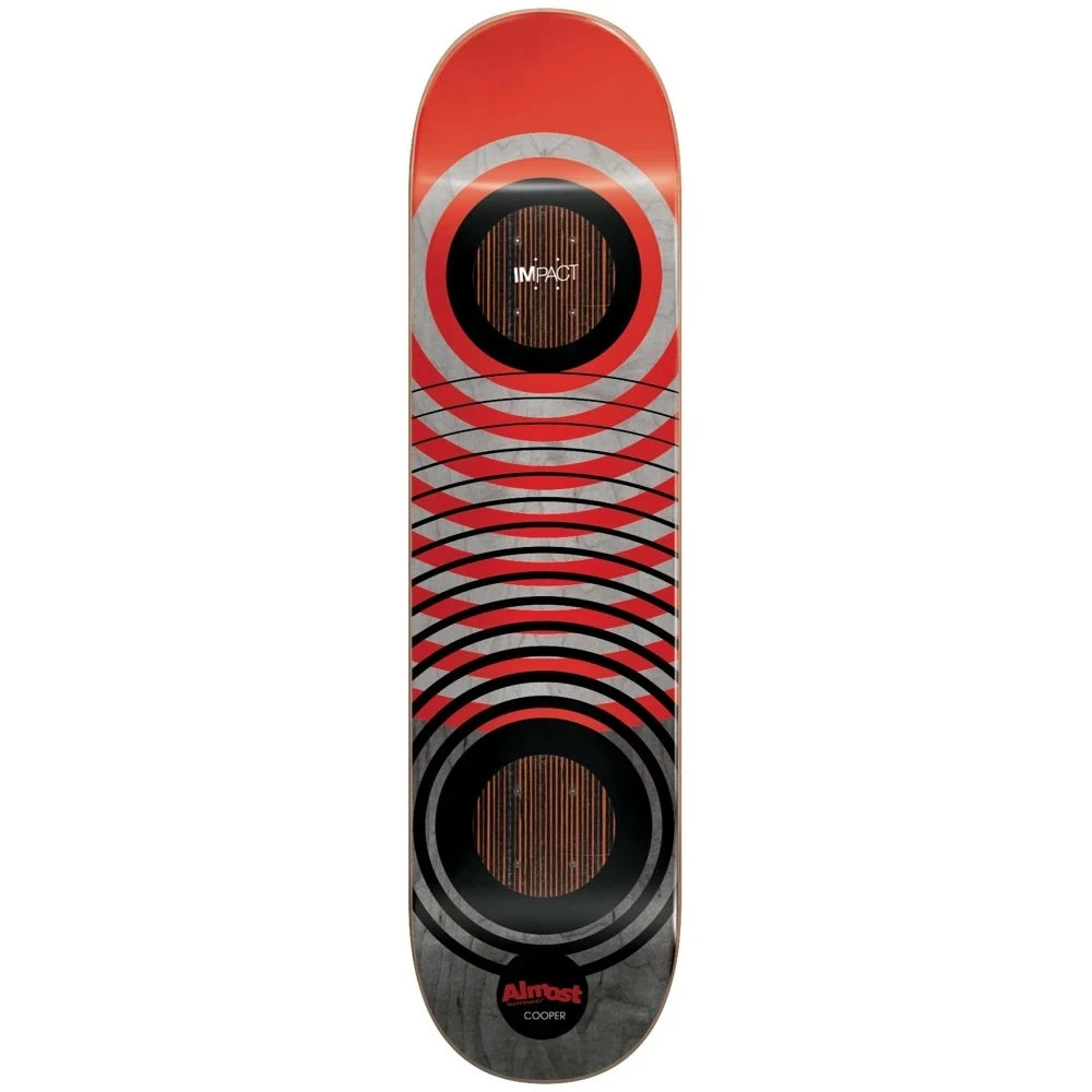 The Red Ring 8″ is the Cooper Wilt Pro Model Impact Support Construction Deck from Almost Skateboards. This classic street size is light and super strong, with Impact Support Carbon discs for epic longevity and super crispy POP!  Impact support discs make the 7-ply North American Maple & Epoxy Resin deck stay stiff and fresh for far longer and will give you mega POP!
