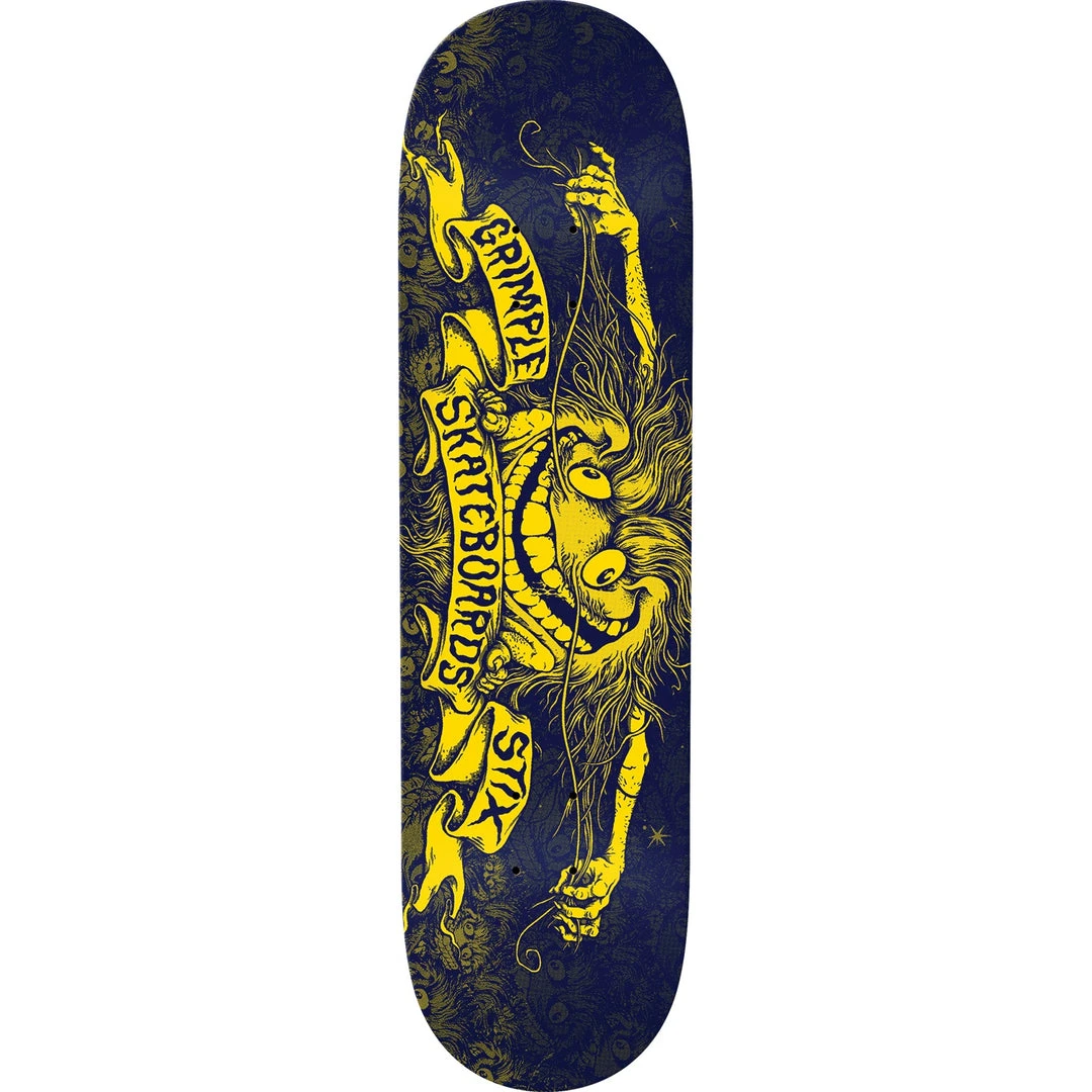 The classic anti hero graphic takes a twist with the Grimple Stix Price Point Deck 7.75 X 31.25. This is a pro quality skateboard deck constructed from traditional 7-ply maple wood with background stains that may vary.