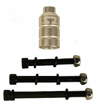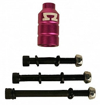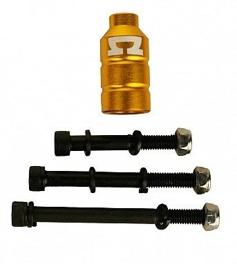 AO pegs are made of highest grade 6061 T6 aluminum and come with 3 M8 axle bolts to fit any size deck. The bolts are made of high tensile Chromoly steel for ultimate strength and come with M8 nuts.