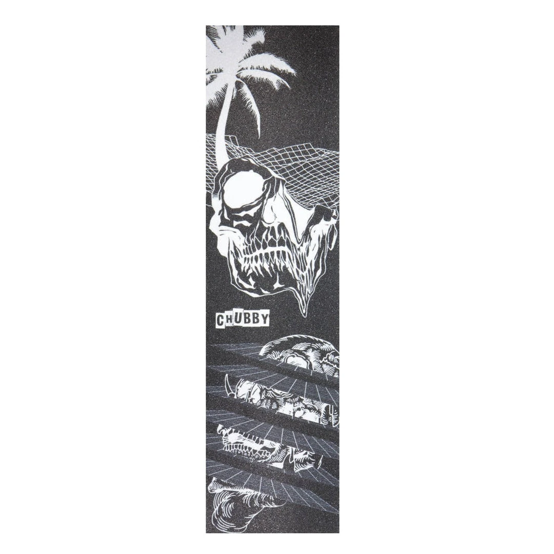 With a tropical inspiration over the skull theme from Chubby comes this piece of griptape for trick scooters. It comes with an all-over print and a nice size that should cover most decks.