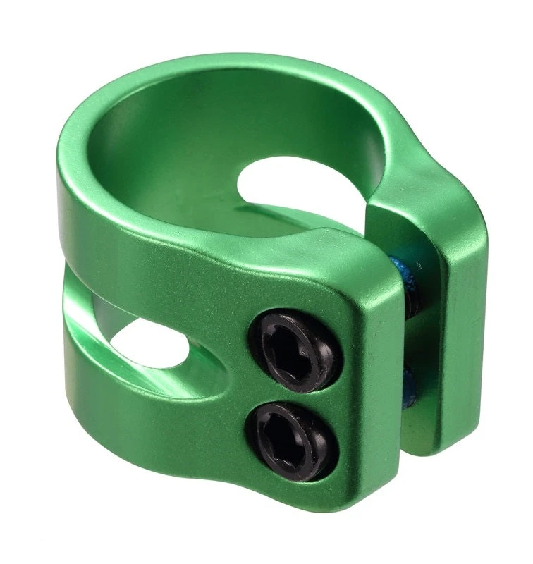 The Envy Double Clamp is a great flashy way to hold your bars on your scooter. Made from 6061 aluminum and anodized in a variety of colors, the Double clamp will grab like a pit bull on steroids and look good doing it.