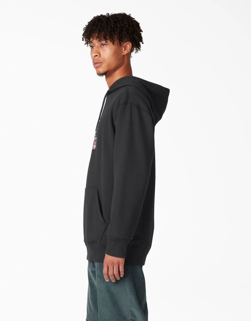 Relaxed fit fleece hoodie, screen printed Franky Villani front graphic.
