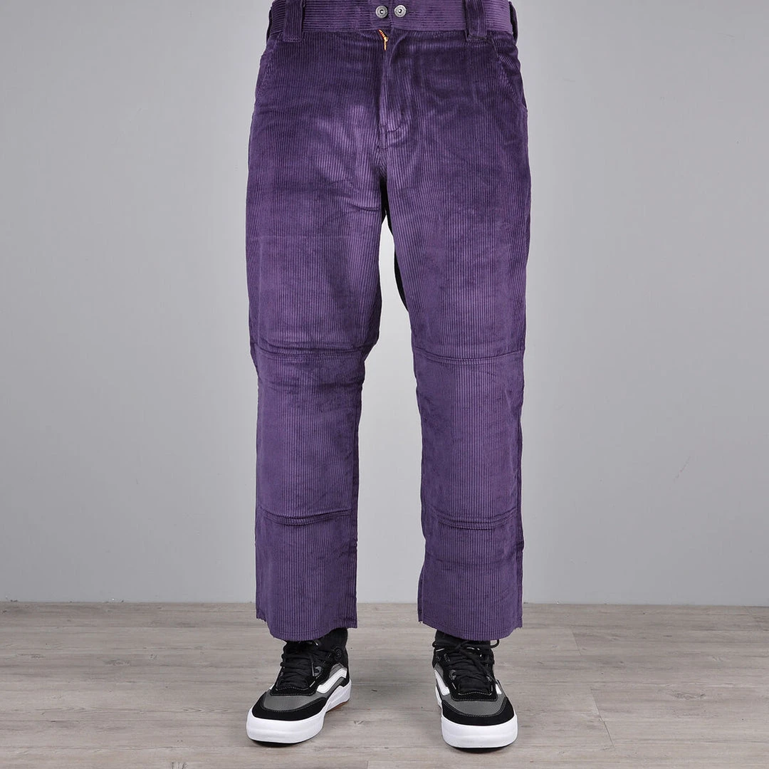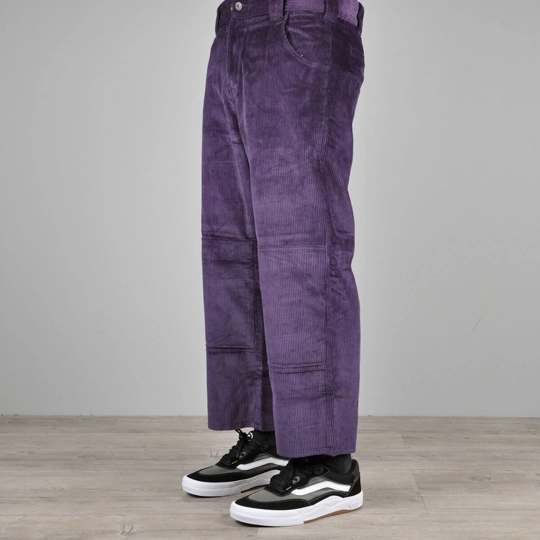 Loose straight fit double knee corduroy pant, cropped with raw edge hem and inside pocket printed with Franky Villani art.