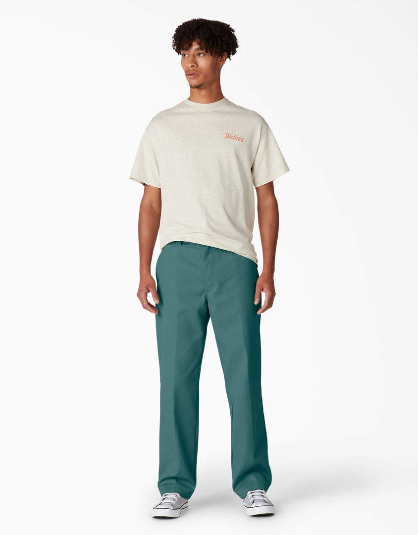 Dickies Skateboarding Twill Pants are built to ride. We took our original 874 pant and updated the design specifically for the skateboarder. The regular fit and high rise give you more room to make the most of your mobility. The interior features Dickies Skateboarding signature red detailing and a soft black herringbone pocket bags for added comfort. At front, the durable metal button closure won’t give out over time, maximizing the life of these skate pants.