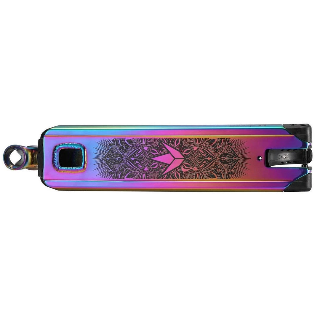 The integrated cups have also been thickened up to avoid any ovalising from hard riding. You will notice a bend in the down tube. This is not just for looks. It allows the head tube to sit more forward for 120mm wheels. Also when the down tube comes into the deck.. it’s on a lower angle thann before.. This allows more metal to be at the front of the down tube.. Increasing the strength.