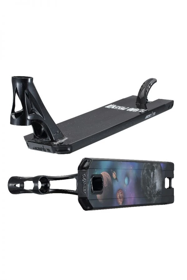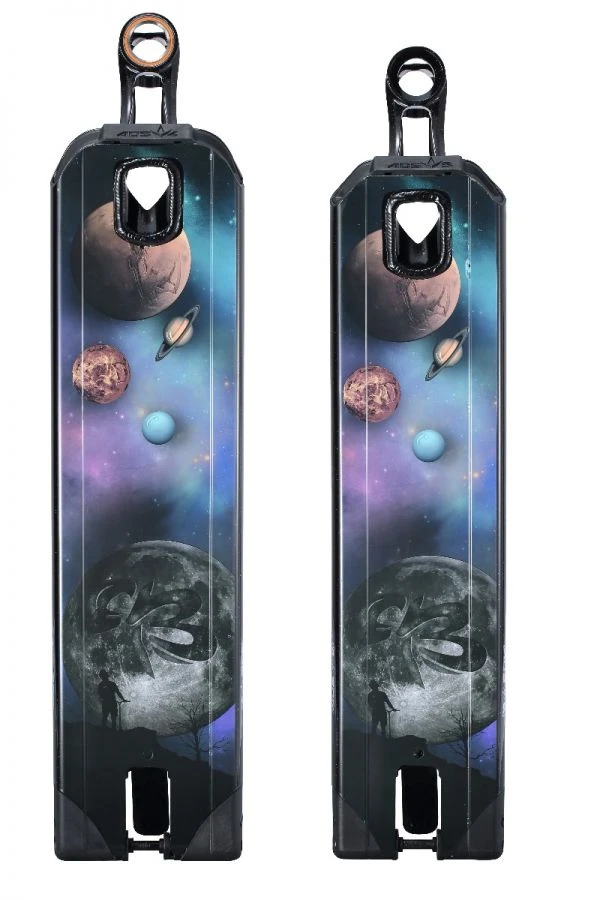 His deck is covered in a “Night Sky” colourway Black with a speckle finish. The base of his deck has his custom “Universe” graphic that contains an homage to his late father just like his Reaper graphic. The silhouette of him staring off into the sky imagining all things great.