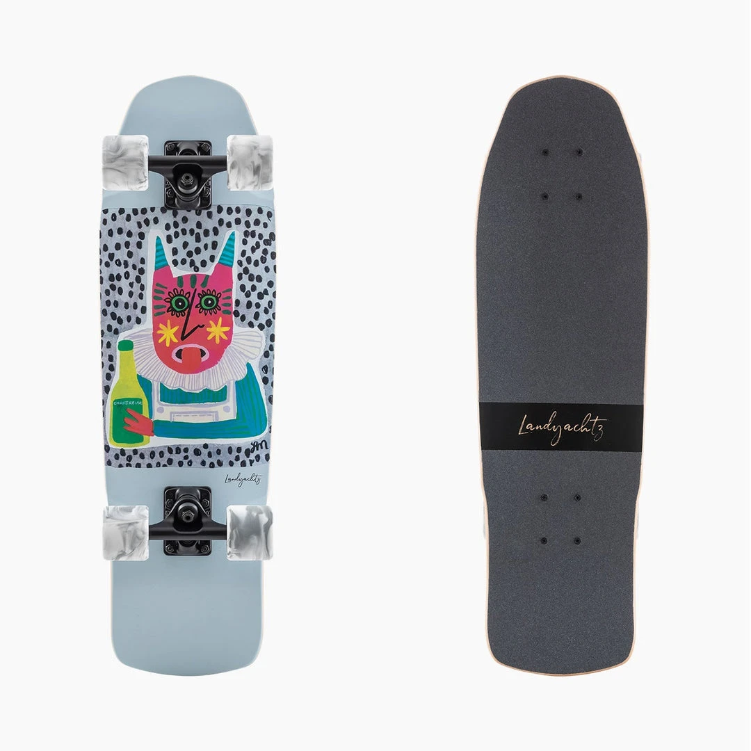 A slight variation on the Dinghy shape that we’ve come to refer to as “Shape 9″, this board is 28.5″ long and 8.5” wide. The most noticeable features are the distinctively squared off nose and extra-wide tail. This shape performs similarly to the classic Dinghy but the unique shape is sure to draw its share of attention. The Chartreuse is pressed with 7 plies of Canadian maple for a light, stiff and poppy ride. It comes set up with Polar Bear 105mm trucks for maximum agility and a super-tight turning circle. 63mm 78a Fatty Hawgs wheels finish off the setup and ensure you’ll have a smooth ride with plenty of roll speed and grip without having to worry about wheelbite.