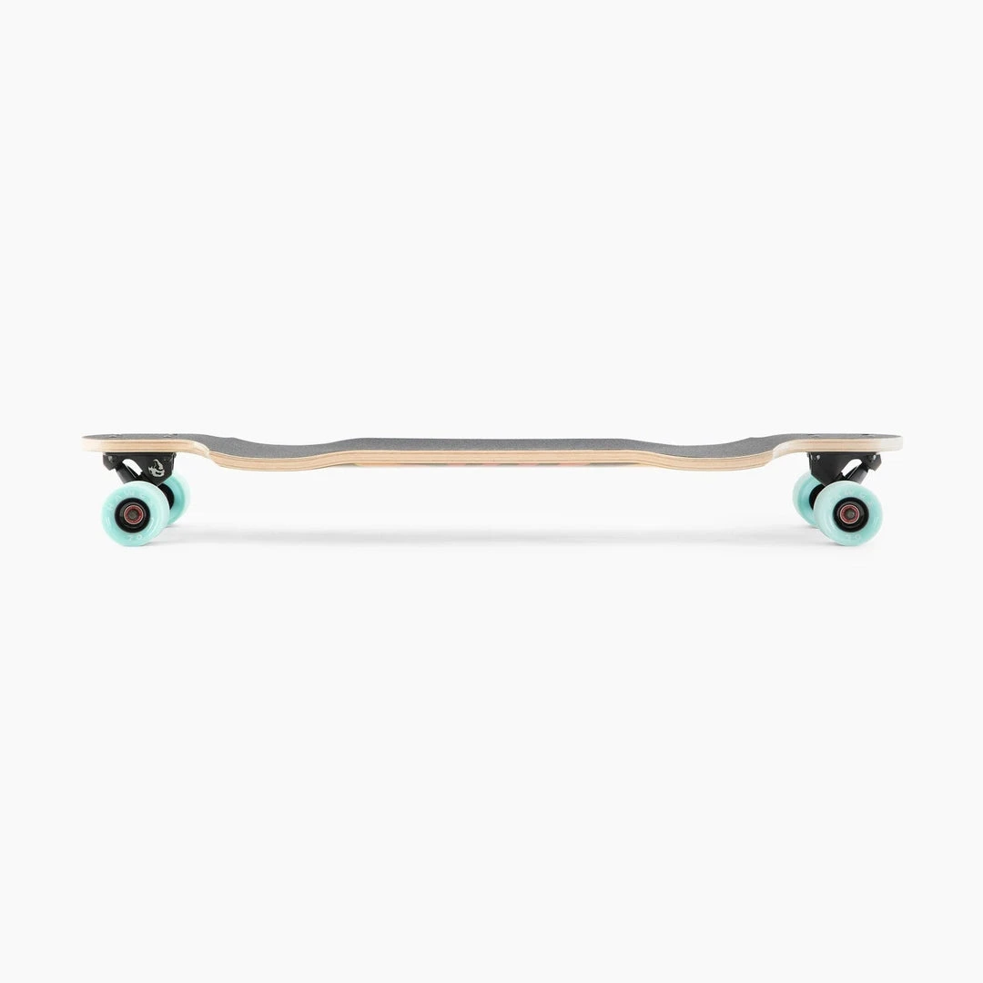 The Fixed Blade is a drop-down DH/Freeride shape that is designed to give you a low, comfortable platform for exploring big hills as well as getting around town as quickly as possible. You may have seen team riders like Dillon Stephens rocking top mounted Switchblades over the years on the race circuit, but now we’ve dialed it in and made it available to everyone. The top mounted design gives you ultimate control over your trucks while deep concave, matched with aggressive W concave and foot pockets at the drops, give you the reference points you need to explore the limits of your freeriding. The 8 ply maple construction, bolstered by carbon stringers and a bottom fiberglass ply, keeps the board stiff and under control. The Fixed Blade measures in at 38″ long by 9.8″ wide with a wheelbase of 29” and comes set up with 180mm Gen 6 Grizzly trucks and 70mm 78a Hawgs Supremes wheels for premium freeride capabilities straight out of the box.