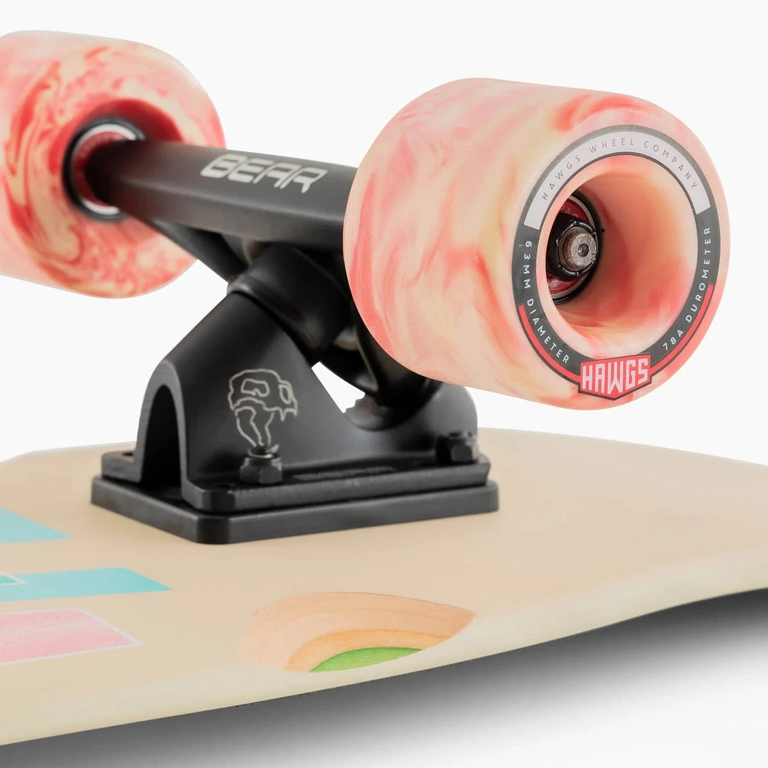 The Tony Danza is a flexy longboard shape designed specifically for freestyle and longboard dancing. At 39.9″ long by 8.5″ wide and with griptape only where you need it, this board is perfectly suited to riders who are looking for a board that will flip faster and with less effort than a wider dancing board. A favourite of team riders like Carla Javier-Brea, this board opens up a lot of technical possibilities due to its light weight and compact size. The Tony Danza uses a 7 ply Canadian Maple construction to give a nice medium flex feel that returns lots of energy out of each turn but still gives you a confident feeling when landing tricks. The shape has been tailored perfectly to our Grizzly Gen 6 155mm trucks for lots of pop and no worries about wheelbite. The Tony Danza rolls on 63mm Fatty Hawgs to keep the complete light and rolling smooth. The narrow width and short wheelbase also make technical tricks more accessible to shorter riders or people with smaller feet. This is the perfect board to introduce younger kids to the world of freestyle and dancing.