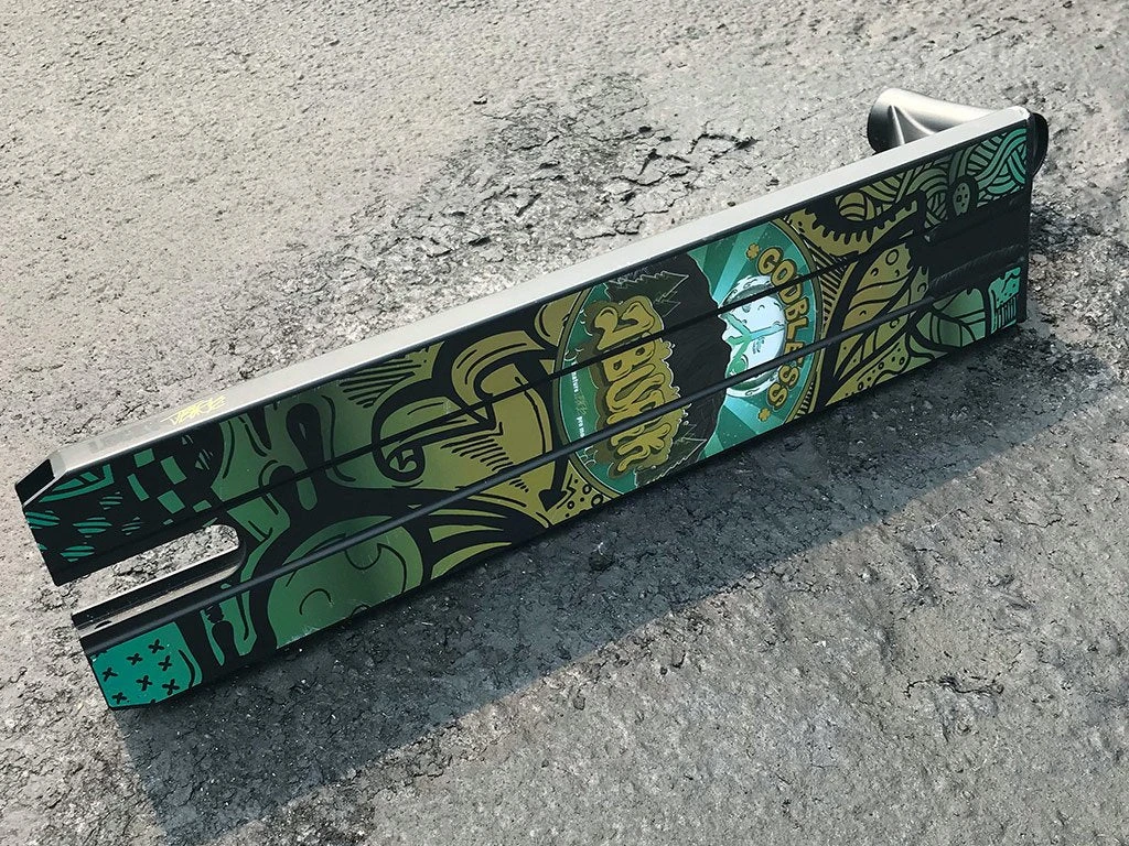 The new squared off deck design allows for more fluid, consistent grinds, and we moved the head tube forward and increased the angle to 83 degrees to give riders even more foot space.
