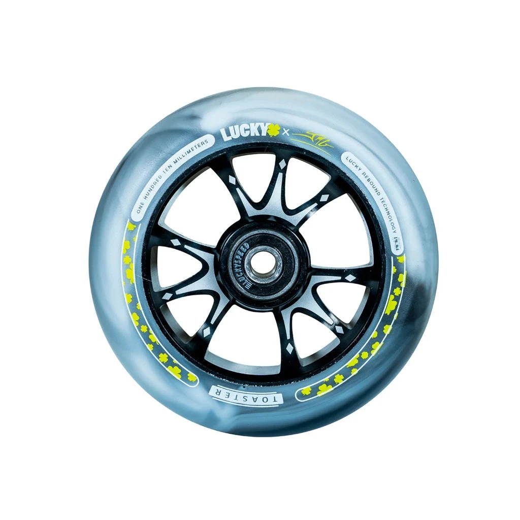 For JonMarco’s 4th Signature Wheel he wanted to stick with the Toaster Core. The gold reflects his first place finish at the 2019 World Championships with white accents that give great contrast to the gold throughout the design. This wheel comes ready to ride out of the box with pre-installed LuckySpeed Bearings.
