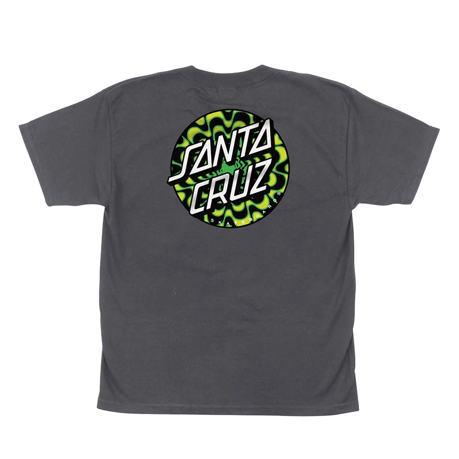 New Santa Cruz Skateboards gear for the little shredders out there! The Kaleidot youth regular fit 6 oz. jersey short sleeve t-shirt features a small front and large back Santa Cruz Kaleidot soft hand ink logo prints. Available in black and charcoal.