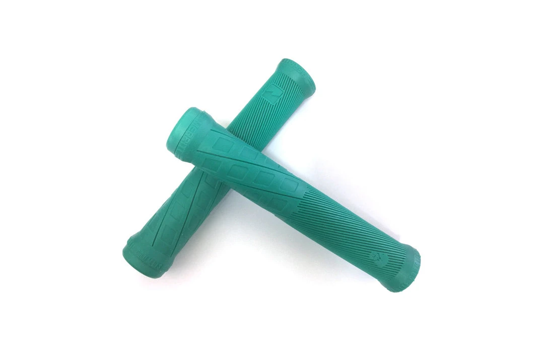 Charlie Crumlish signature grips, soft kraton rubber with a flangeless design that’s long and thin. Plastic bar ends included.