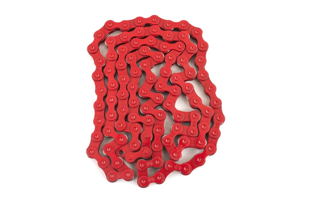 A teflon coated 510 chain with heat-treated pins and thicker side plates, our 510 chain is built to last. Features a factory installed half link and master link. Available in assorted colors for a custom look!