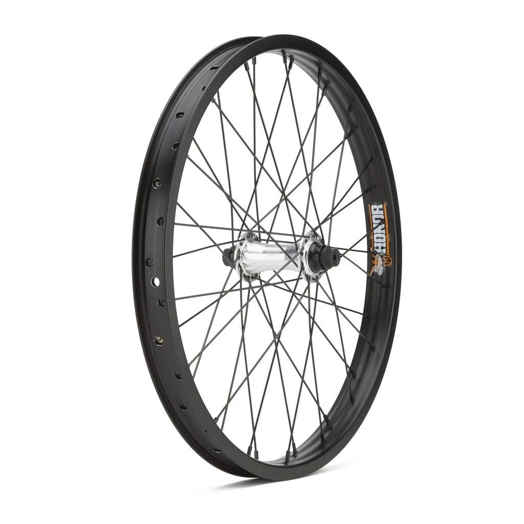 The Mission Radar front wheel features the Mission Radar front hub, hand laced to our strongest Mission Mylar rim. Sealed bearings, double wall rim, 36 stainless steel spokes, trued to perfection.