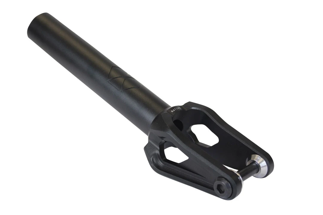 Native brings you the most versatile fork on the market. As scooter riders, Native draws inspiration from the evolving culture that Scootering is and design their products accordingly. The Versa Fork comes with an 8mm axle, 12mm axle and adaptive spacers to fit either 24mm or 30mm wide wheels. This fork is capable of running all of the industry standard wheels while looking really good.