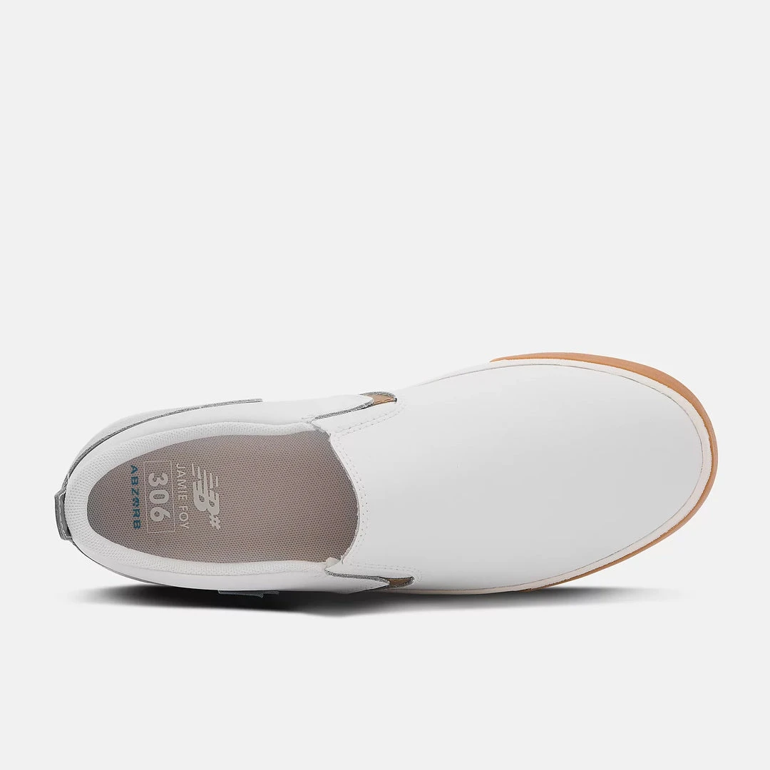 Introducing the NM306LV1, the laceless version of Jamie Foy’s pro model shoe for New Balance Numeric. An update on the traditional vulcanized skate shoe, the NM306LV1 features rubber underlays for durability and mesh panels for comfort and breathability. These innovative skate shoes are constructed with a slip-on suede upper designed to hold up against the toughest wear and tear.