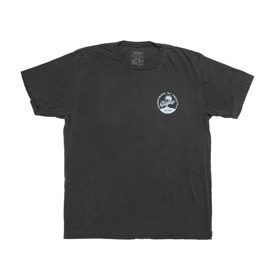Distressed pigment dyed color. Vintage vibes with a wide and loose fit.
