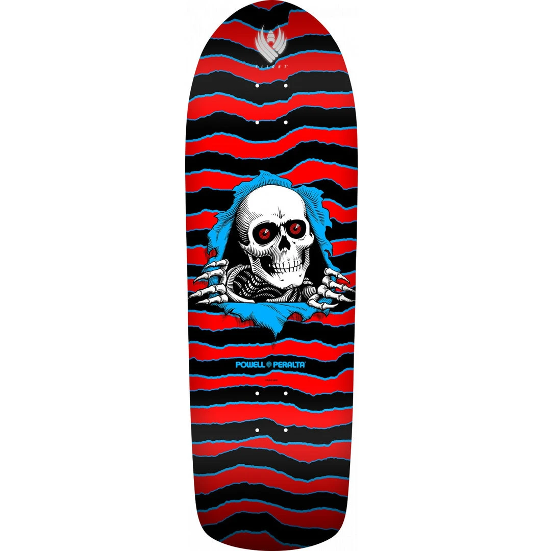 Arguably the most iconic skateboard graphic of all time, “The Ripper” was illustrated in 1983 by legendary Powell-Peralta artist Vernon Courtlandt Johnson. Originally the graphic was used as a “Bones Sold Here” dealer window sticker. Next, the artwork found it’s way onto t-shirts and eventually decks. The Ripper graphic has stood the test of time and has been a staple of the Powell-Peralta line for over 30 years.