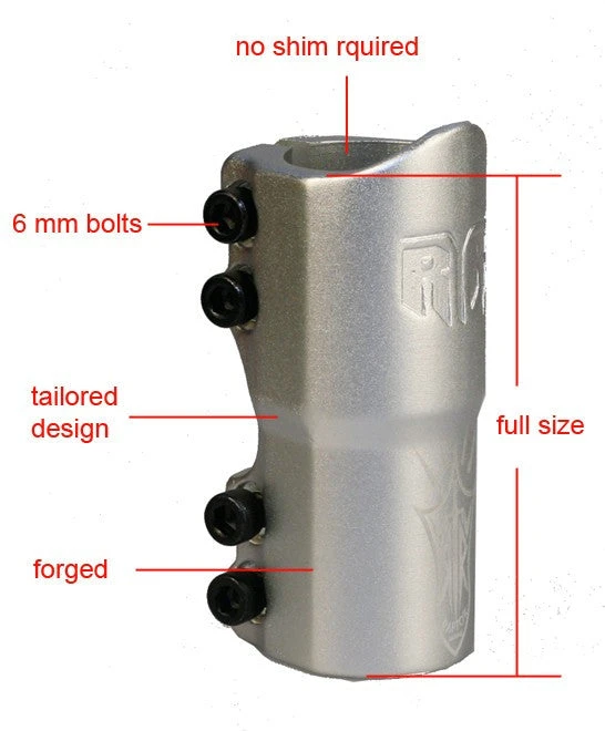 Specs: – Forged aluminum – Tailored design for minimal weight – Standard size – Shimless for powerful grip – Consistent wall thickness – Full length SCS clamp – Including washer and bolt – Weight: only 150 g (5.3 oz.)