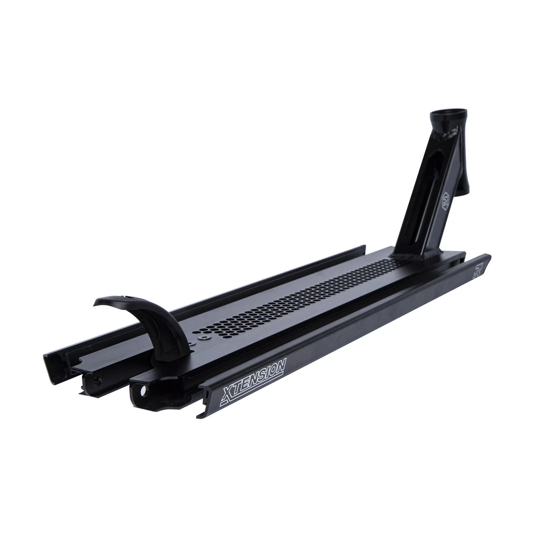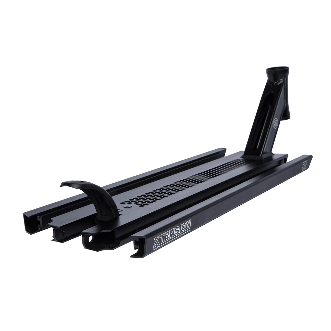 The Xtension deck is, at its core, a standard scooter deck. However, with the implementation of extension rails that slide elegantly onto the sides of the deck, the Xtension deck can be either 4.75”, 5.5”, or 6” in width. Each Xtension rail is simple to swap out and robust enough to retain its shape and stands up to the most demanding riding and terrains. The Xtension rails remain rigid and maintain the ability to be added to or removed from the sides of the main deck frame.
