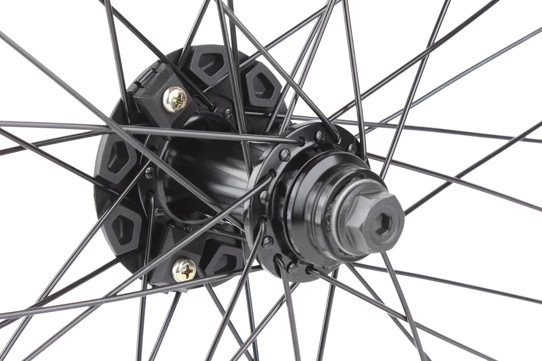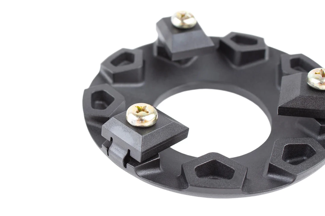 The updated design attaches to the wheel via easily sourced self-tapping Phillips-head screws and the G.L.A.N.D.’s fold-over locking tabs that keep the guard centered and firmly seated on the spokes. Super light, super affordable, and will fit most 36-H front hubs with a 3-Cross lacing pattern.