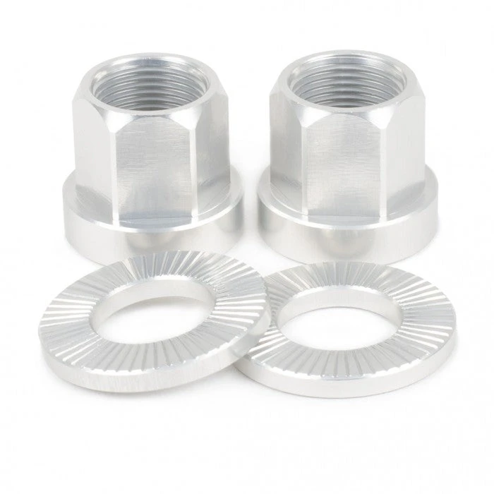 The Shadow Conspiracy Axle Nuts are 7075 aluminum axle nuts and washers. They are approximately half the weight of traditional steel nuts.