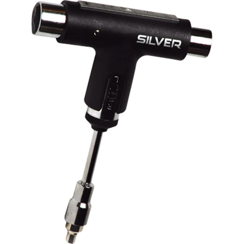 This all-in-one, multi-functional Silver Trucks Black Multi-Purpose Skate Tool allows you to make personal adjustments and fine tune your skateboard or longboard, tighten your trucks, and change your wheels. Made from high-quality materials, this Silver skate tool is light enough to carry with you, yet durable enough to get the job done.