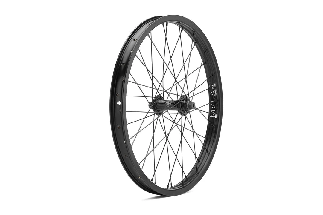 The Mission Radar front wheel features the Mission Radar front hub, hand laced to our strongest Mission Mylar rim. Sealed bearings, double wall rim, 36 stainless steel spokes, trued to perfection.